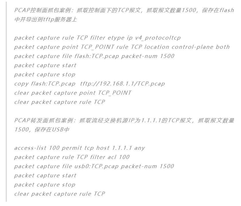 数据中心交换机既可以通过端口镜像功能进行报文捕获,还可以使用PCAP功能进行报文捕获。PCAP(Packet Capture)是一种网络设备支持的抓包功能,类似于个人电脑上的抓包软件。可以将进入交换机或者从交换机发的报文抓取下来保存在文件中或直接显示出来。PCAP可以通过两种方式进行抓包,控制面抓包和转发面抓包。