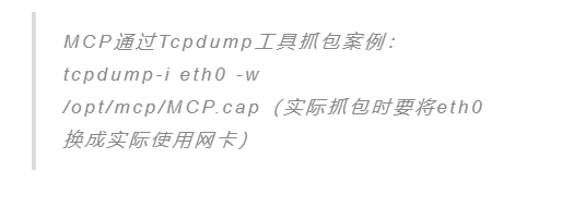 MCP可以通过Linux服务器上的Tcpdump工具进行抓包,可以在命令行下和WEB页面下进行报文捕获。如果说Wireshark是世界上流行的图形化数据包分析工具,那么Tcpdump是世界上流行的命令行数据包分析工具。通过SSH登录到MCP的Linux服务器上使用Tcpdump命令进行抓包,使用Tcpdump抓包后可以直接在命令行下进行分析或者将报文导出使用Wireshark进行分析,下表为大家整理了常用的Tcpdump命令参数。