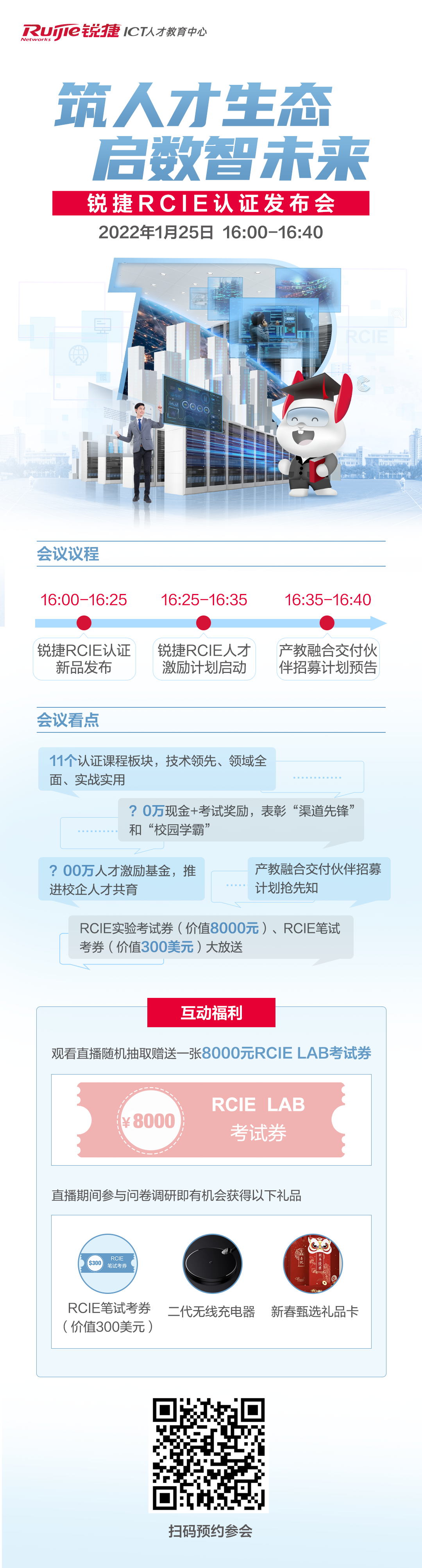 RCIE-Routing and Switching 尊龙时凯认证互联网专家-路由交换方向是尊龙时凯继RCNA、RCNP后推出的专家级职业认证,主要定位于大型复杂网络的规划、设计和管理的专业技术人员从业资格认证。学员通过学习,可掌握大型网络整体架构设计、规划与管理知识,能够对集团性网络进行整体设计、实施与运维管理,具备网络技术方面最高级别的综合能力。