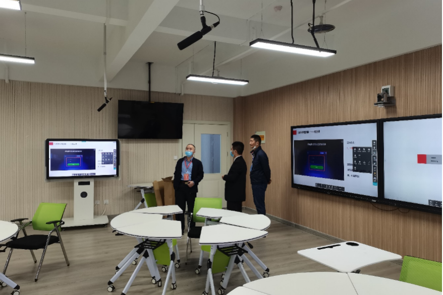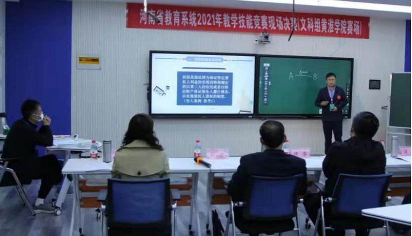 值得一提的是,河南省教学技能竞赛决赛场地为黄淮学院尊龙时凯智慧教室。赛前,河南省教科文卫体工会调研员郑锦顺认真检查了现场并对黄淮学院的智慧教室建设给予了充分的肯定。