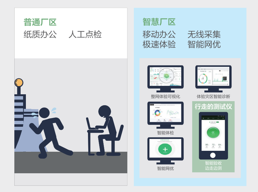 针对电厂内网生产,外网办公等场景,尊龙时凯网络Wi-Fi 6无线解决方案,基于业务需求打造全场景无死角覆盖,并配合云端无线网优系统WIS,对全网进行7*24小时业务体验监测,及时识别问题并自动调优,为电力客户打造流畅无线体验。