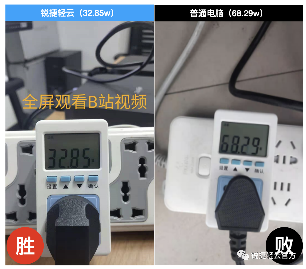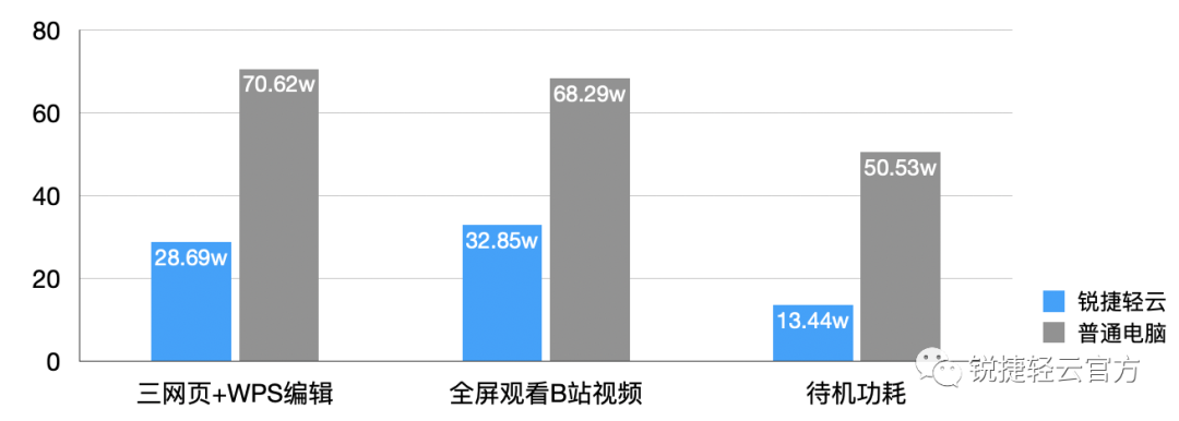 轻云在全屏观看B站视频的状态下耗电32.85w,比普通电脑在该状态下(68.29w)耗电降低51.9%,实测数据如下图。