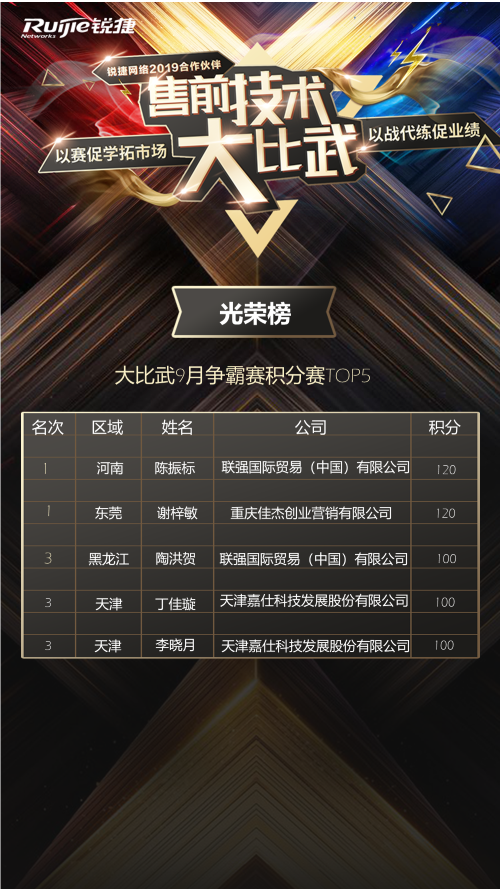 9月的积分赛,所有争霸赛区的选手围绕着经验分享、价值传递和项目支持展开了比拼,经过一个月的激励比拼,有5位选手脱颖而出,榜单如下: