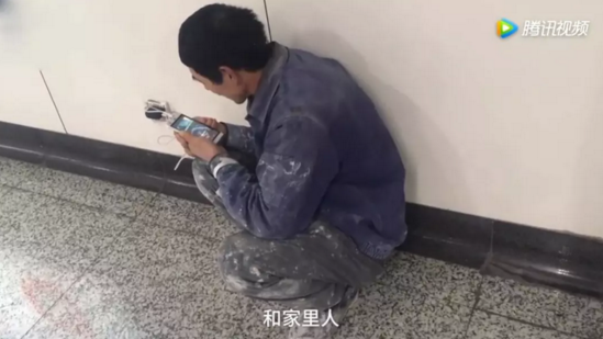 蹲靠在墙边,和妻子视视频,聊聊天